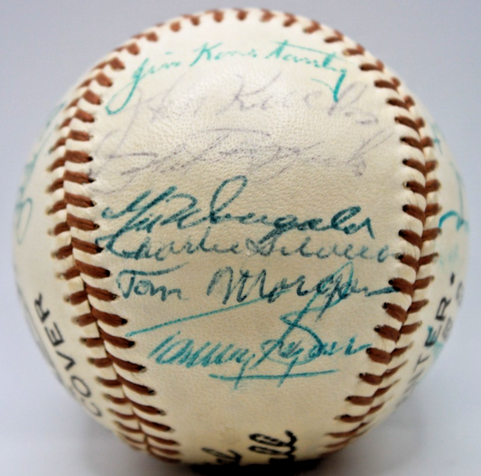 1955 Yankees (27) Mantle Berra Ford Howard Team Signed Spalding Baseball JSA