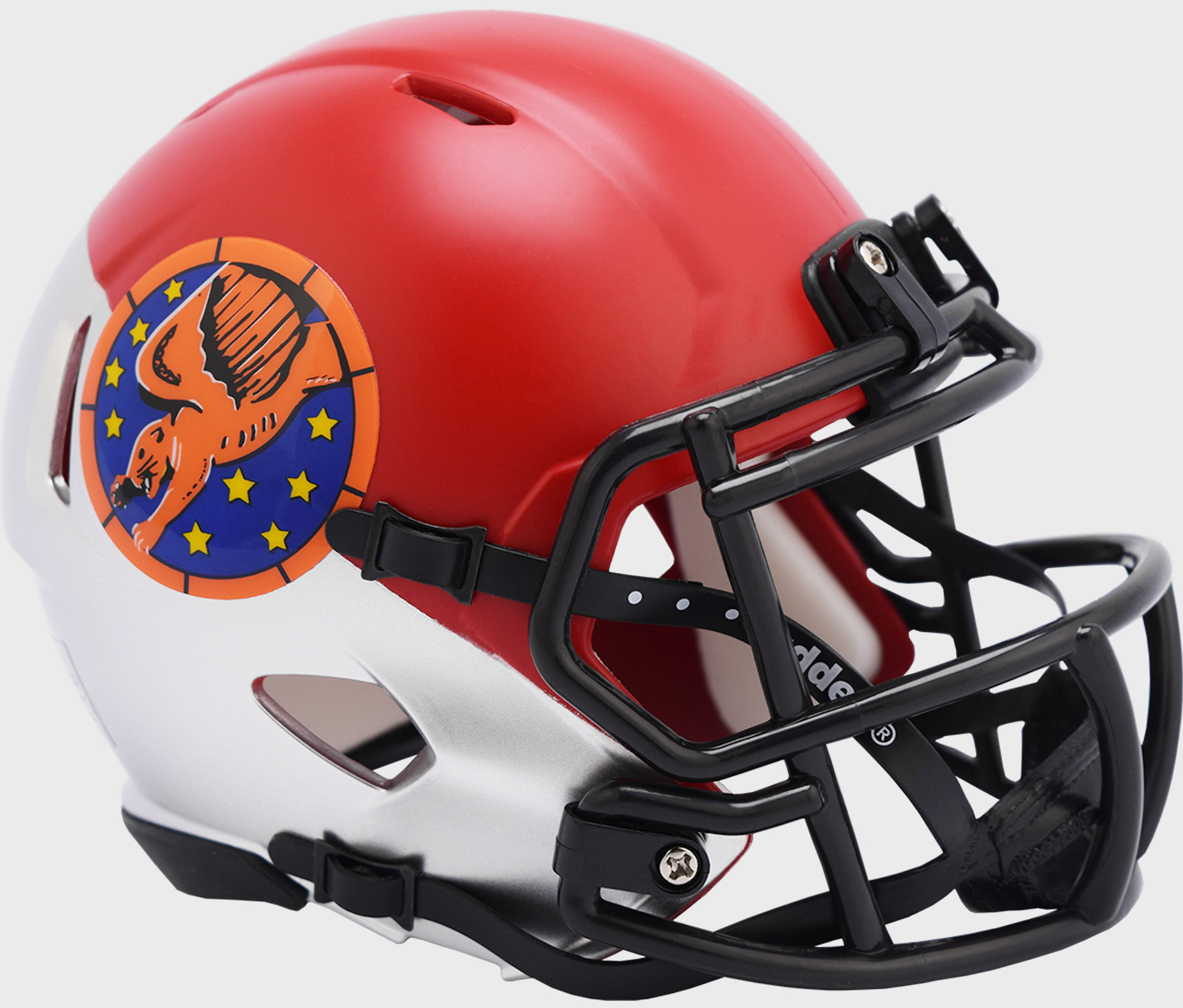 The most popular collectible in history is now available in the Speed Helmet design. The Speed Mini Helmet is a half-scale replica of one of the most popular new helmet introductions in Riddell's history. It's a must-have for the serious collector. Includes interior padding and a 4-pt. chinstrap. Official colors and decals. Ideal for autographs. Approx. 5 tall.