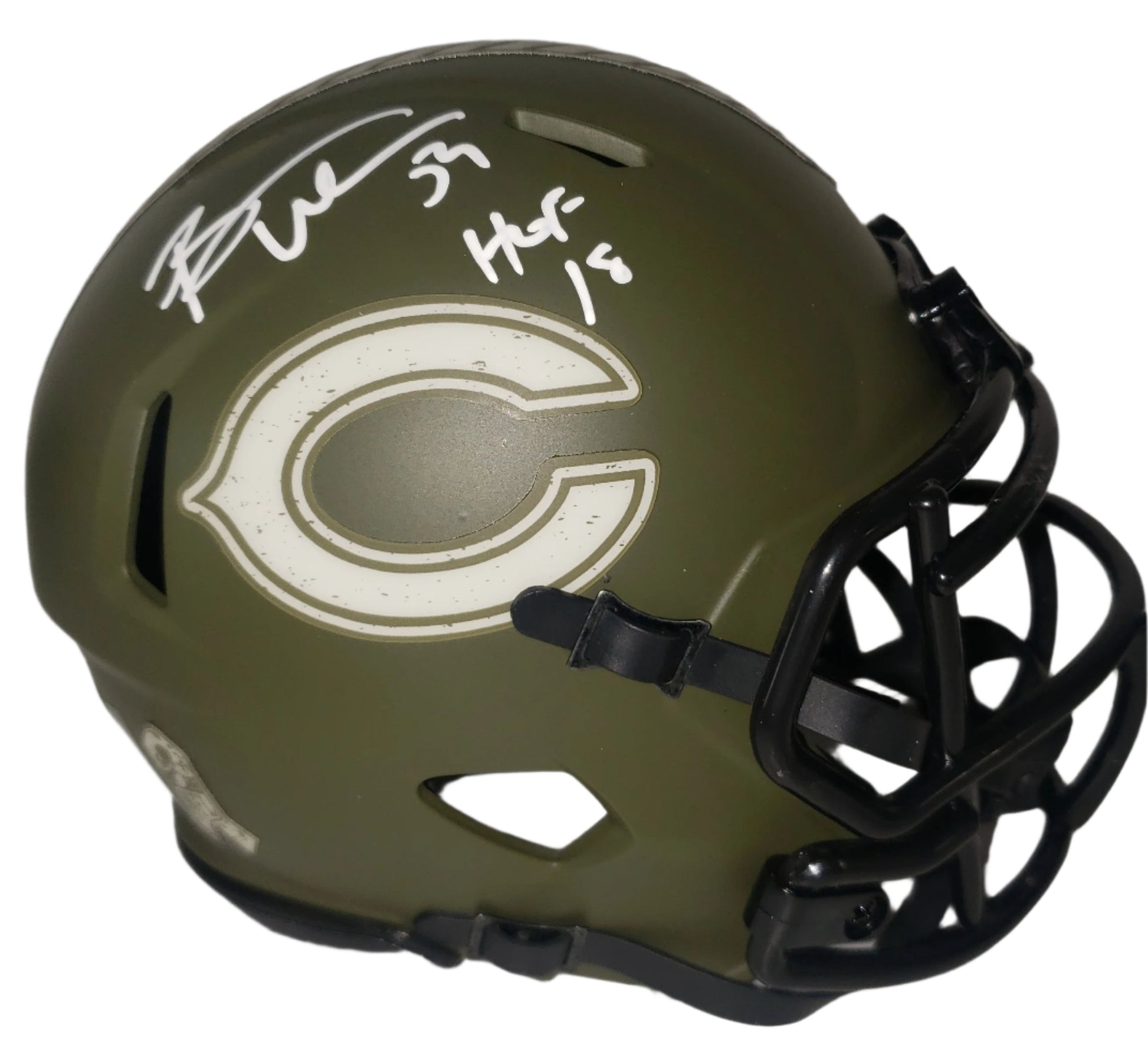 Brian Urlacher Signed Bears Salute to Service Mini Helmet with "HOF 18" inscription.