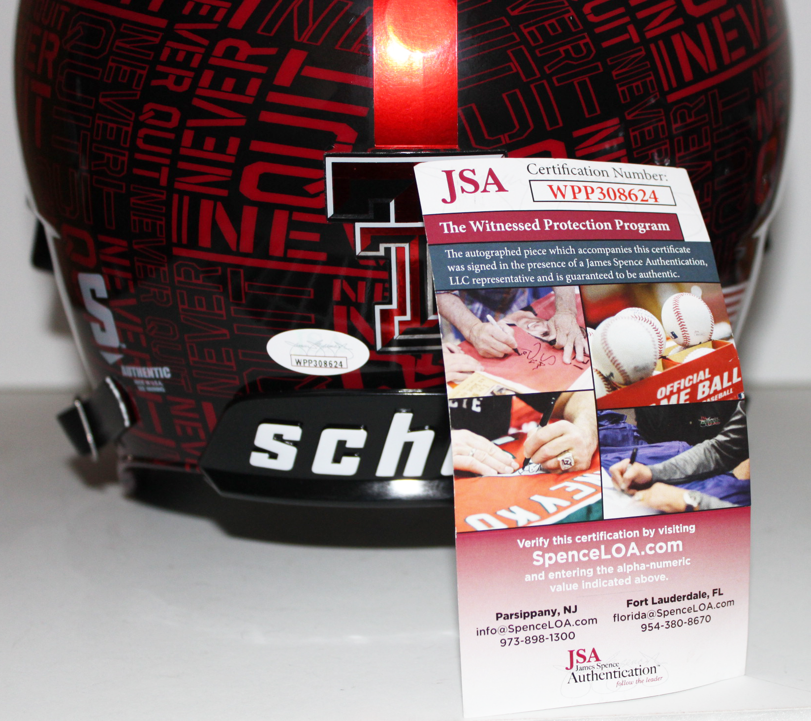Patrick Mahomes Texas Tech Red Raiders Signed Schutt Full Size Helmet Authentication: JSA (James Spence Authentication)